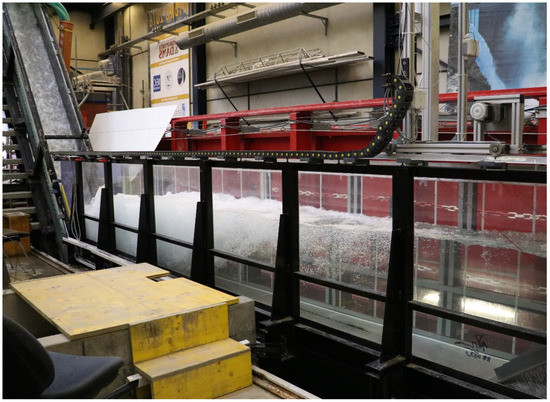 The spillway model, assembled at the Laboratory of Hydraulic Constructions (LCH) of the Ecole Polytechnique Fédérale de Lausanne (EPFL) in Switzerland, consisted of a: jet box at the chute inlet [13], prismatic smooth or stepped chute, and plain, prismatic, and horizontal stilling basin (Figure 1 and Figure 2).