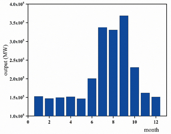 As shown in Figure 5, the hydropower scheduling model, when solved with the Zoutendijk method, could ensure a stable power output during dry seasons. As demonstrated in the results, the firm hydropower output from all cascaded hydropower plants could be maintained at a high level thanks to the cooperation of all reservoirs by coordinating their active storage capacities. At the same time, the power output during flood seasons was significant in ensuring the total energy production by utilizing abundant inflows into the reservoirs.
