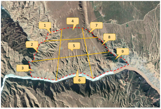 According to the monitoring results of the slope, we selected nine reference points in Figure 12 (1–9) to examine the deformation. The deformation statistic results of the corresponding points are shown in Figure 13.