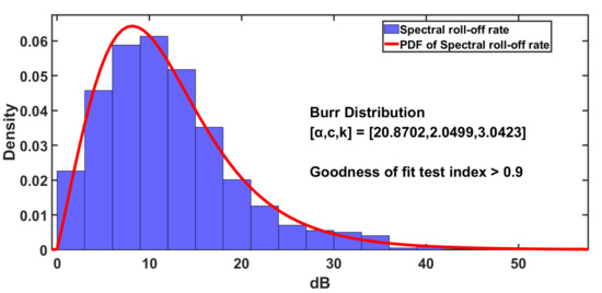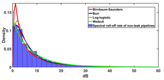 Figure 8 delineates the probability density function (PDF) of the spectral roll-off rates of the acoustic emission signals of pipelines with a leakage.