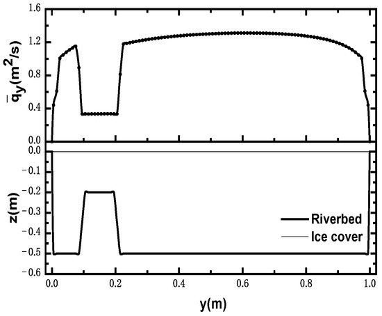 Section topography showing ice cover and riverbed distribution, and cross-sectional relative-unit discharge in a rectangular section.