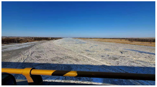 In the northern hemisphere, approximately 60% of rivers are significantly impacted by the seasonal effects of river ice [1]. Under-ice discharge is an important hydrological element during ice periods, which is of immense significance for predicting potential ice disasters, such as ice jams, during the ice-covered period, as well as for river management, directing, and decision-making linked to ice-disaster prevention [2,3].