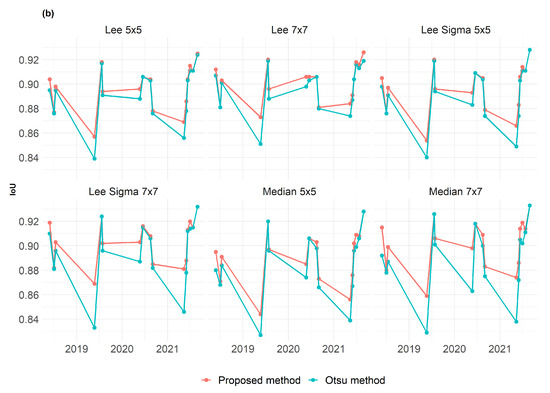 In choosing polarization and speckle filtering parameters, Uddin et al. [40] relied on recommendations made for Otsu’s method, although it is based on different thresholding principles. For the method proposed in this paper, such parameters have to be estimated.