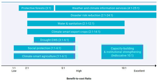 The representative benefit-to-cost ratio ranges for different adaptation measures based on information review from Africa. Photo credit: The Global Center on Adaptation [53].