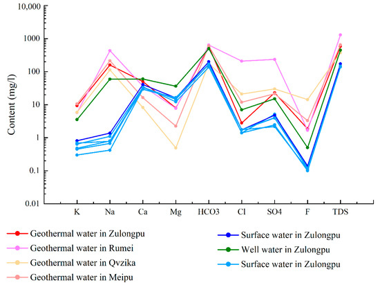 - Tian, Y.; Yu, C.Q.; Luo, K.L.; Zha, X.J.; Wu, J.S.; Zhang, X.Z.; Ni, R.X. Hydrochemical Characteristics and Element Contents of Natural Waters in Tibet, China. J. Geogr. Sci. 2015, 25, 669–686. [Google Scholar] [CrossRef]