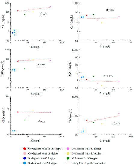 - Wang, X.; Wang, G.L.; Gan, H.N.; Liu, Z.; Nan, D.W. Hydrochemical Characteristics and Evolution of Geothermal Fluids in the Chabu High-Temperature Geothermal System, Southern Tibet. Geofluids 2018, 2018, 8532840. [Google Scholar] [CrossRef]