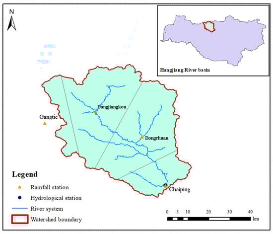 The Xun River originates from Ningshan County, Shaanxi Province, and is a first-class tributary of the Hanjiang River, with a length of 218 km. The upper reaches of the Xun River are located above Chaiping Station, with a length of 117 km and a watershed area of 2364 km2. Abundant rainfall causes frequent floods in this area, which is characterized by a large peak volume (2690 m3/s). Therefore, accurate flood projection is necessary to maintain the safety of downstream power stations and people’s lives.