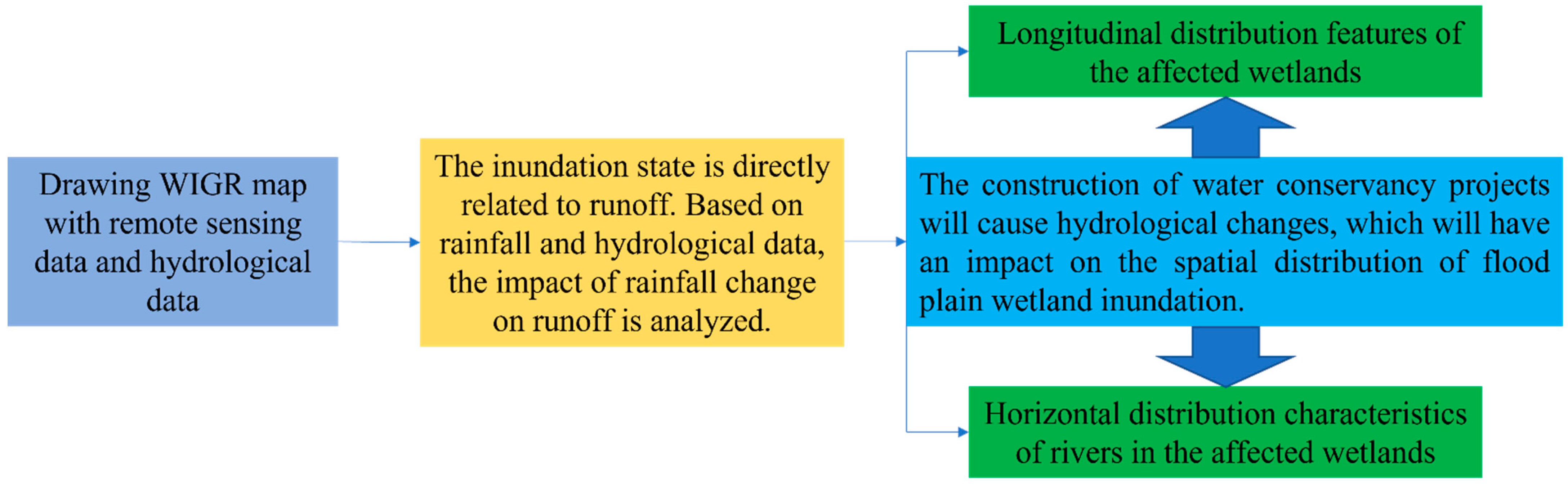 - This study assesses the spatial impact of water conservancy project construction on floodplain wetlands based on the WIGR model. This study is the application of the WIGR model, which will have broad application prospects in floodplain wetland biodiversity, ecosystem stability, conservation area delimitation, etc., but there are also some defects such as the impact of remote sensing data cloud and rain, the number of remote sensing data, and the accuracy of hydrological data that will have an impact on the application of WIGR model in floodplain wetland;