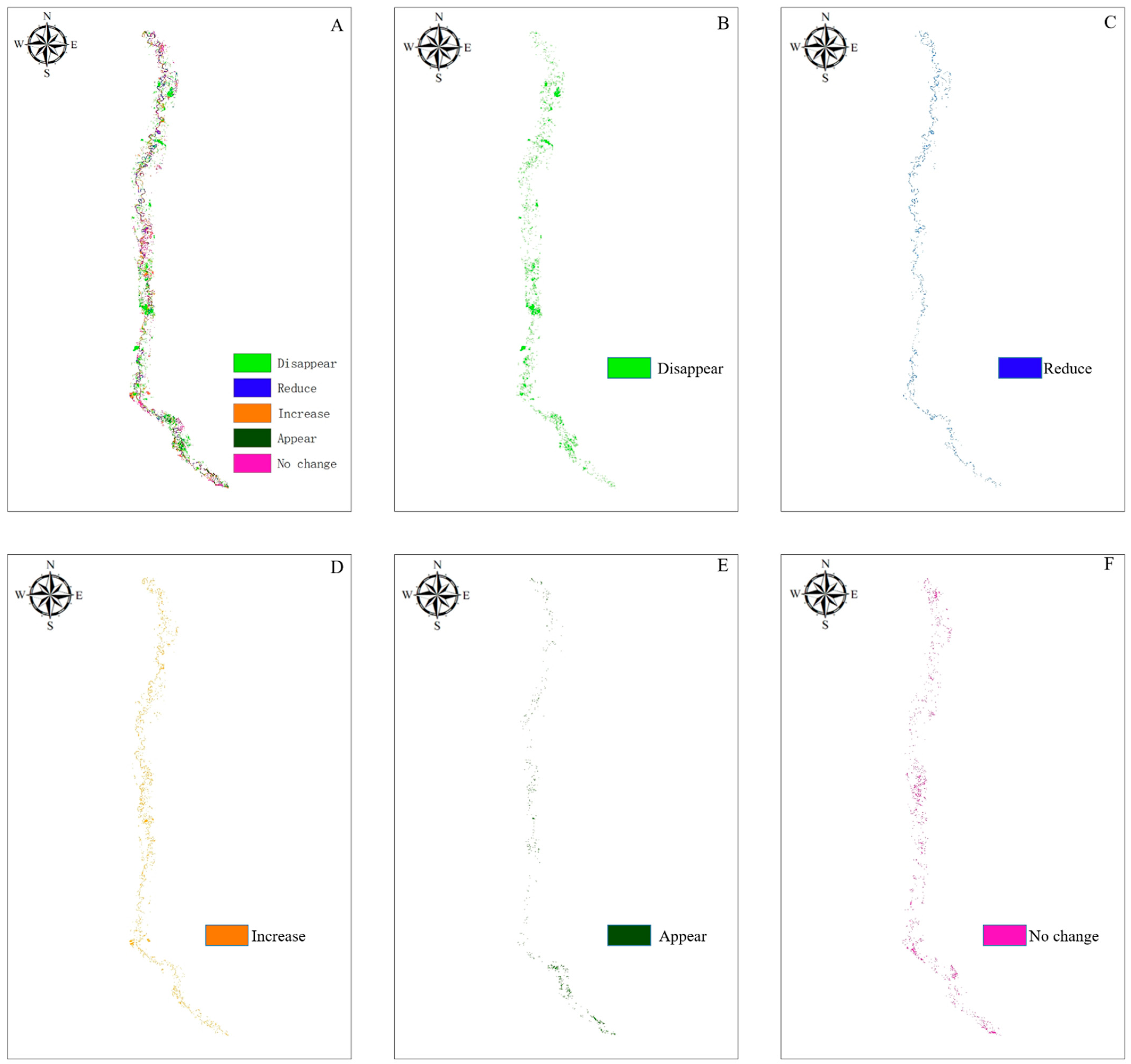 5.3. Longitudinal Distribution Features of the Affected Wetlands