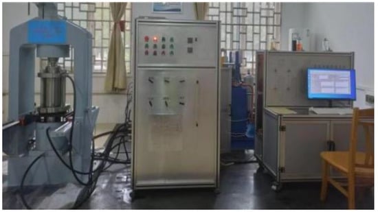 The strength of the samples is tested using the automatic rock triaxial test system with a maximum axial force and radial pressure of 2000 kN and 60 MPa, respectively (Figure 3). The equipment has two sets of dynamic and static loading systems, which can carry out rock mechanics tests such as conventional uniaxial and triaxial compression tests, permeability tests, and creep tests of rock materials.