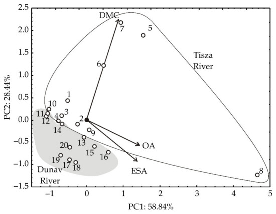 3.2. Detection of DMC, ESA and OA in Water from Sampling Sites in the Danube River and the Tisza River