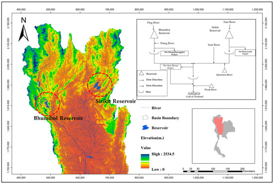 Locations and schematic diagram of Bhumibol and Sirikit reservoirs.