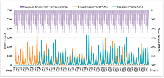 Historical inflow and average downstream water requirements of the Bhumibol and Sirikit reservoirs.