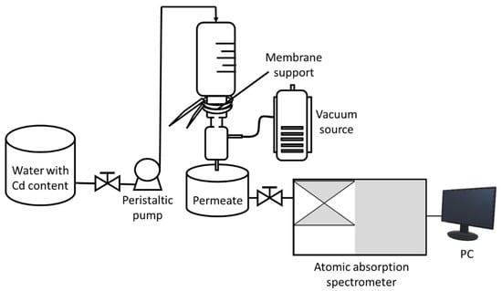 Schematic representation of the ultrafiltration test cell of water with cadmium content.