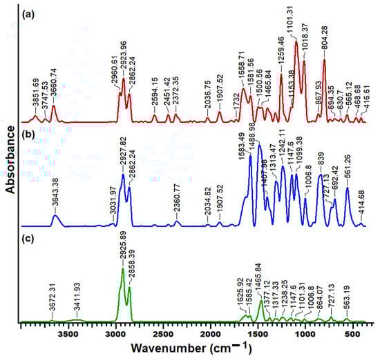 FTIR spectra recorded from membranes obtained from casting solutions: (a) PSFQ (P0), (b) PSFQ/Cyphos 101 IL (PIM-Ph 5 wt.%), and (c) PSFQ/Aliquat 336 (PIM-Am 15 wt.%).
