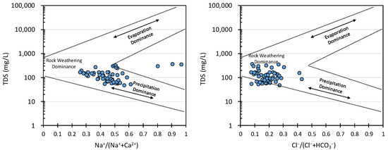 - Gibbs, R.J. Mechanisms Controlling World Water Chemistry. Science 1970, 170, 1088–1090. [Google Scholar] [CrossRef] [PubMed]