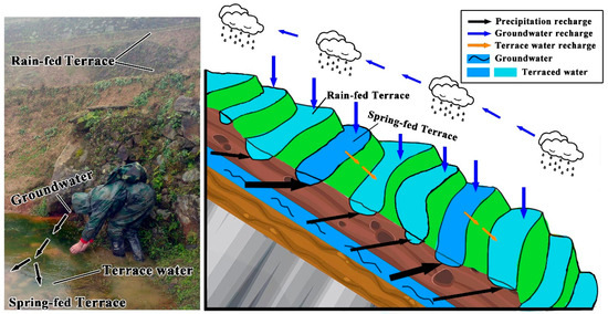 The above analysis indicated that the recharge water sources in the terraces showed significant heterogeneous characteristics both temporally and spatially, and the high degree of coupling between these two heterogeneous features formed the basic framework of the spatial–temporal heterogeneity mechanism of the water recharge sources in the rice terraces of the study area. The results suggested that the two cycles of spring-fed and rain-fed seasons alternated on a temporal scale, while the rain-fed and spring-fed types showed spatial distribution in an interwoven pattern. However, the detailed operation of this coupling mechanism and its capability of maintaining the stability of terrace water sources are yet to be explored.