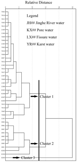 - According to the hydrogeochemical origin and cluster analysis, the chemical composition of the Jinghe River is obviously different from the hydrogeochemical composition of the fissure water and karst water in the area. It can be inferred that the Jinghe River has hydraulic connection with pore water, but there is almost no hydraulic connection between Jinghe River and the regional karst water. This shows that it is difficult for the Jinghe River to recharge karst groundwater through leakage. However, the specific hydraulic recharge and discharge relationship between water bodies needs to be further analyzed by means of runoff characteristics and isotope chemistry.