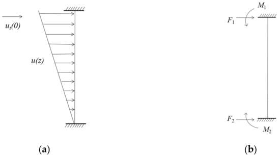where z is the height from the water surface (negative value), d is the length of the tension legs, and ut (0) is the flow velocity at the top of the tension regression. It can be seen that the flow velocity gradually decreases with the increased depth. The action on the tension-leg can be simplified to an equivalent nodal load, as shown in Figure 2.