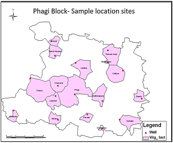 Water sample location sites (16 well locations, Phagi Block, Rajasthan, India (Source—Primary Data).