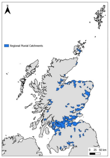 - JBA Consulting. Derivation of a Regional Pluvial Flood Hazard Dataset, Report for SEPA; JBA Consulting: Edinburgh, UK, 2014. [Google Scholar]