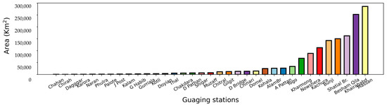 Size of catchments w.r.t. areal coverage in the Upper Indus Basin.