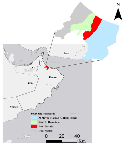 - Al Ruheili, A.; Dahm, R.; Radke, J. Wadi flood impact assessment of the 2002 cyclonic storm in Dhofar, Oman under present and future sea level conditions. J. Arid. Environ. 2019, 165, 73–80. [Google Scholar] [CrossRef]