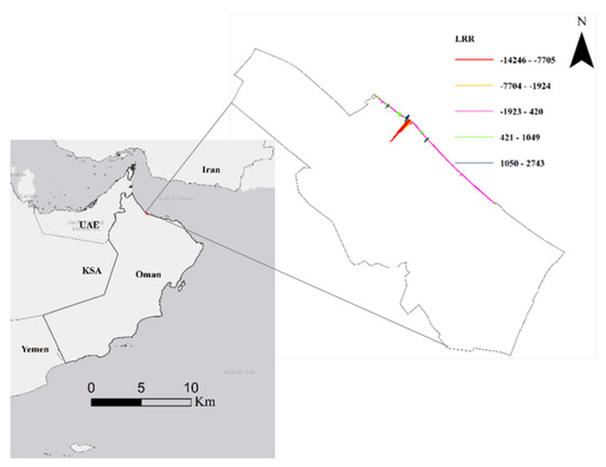 Shoreline accretions and erosion of Al Khaboura coast with LRR.