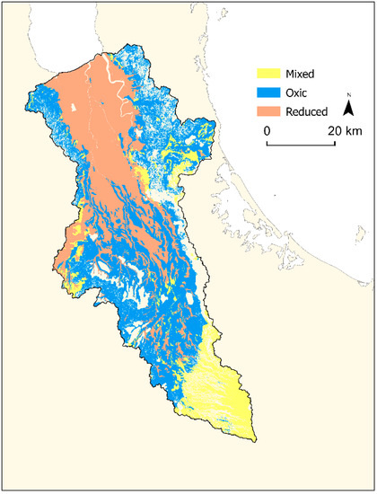 - Close, M. Prediction of Subsurface Redox Status for Hauraki and Coromandel catchments. Prepared for Waikato Regional Council; Insititute of Environmental Science and Research Ltd.: Wellington, New Zealand, 2016. [Google Scholar]