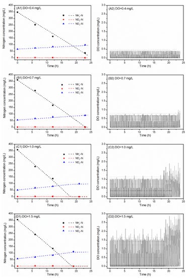 3.1. Influence of DO on the Deammonification Process
