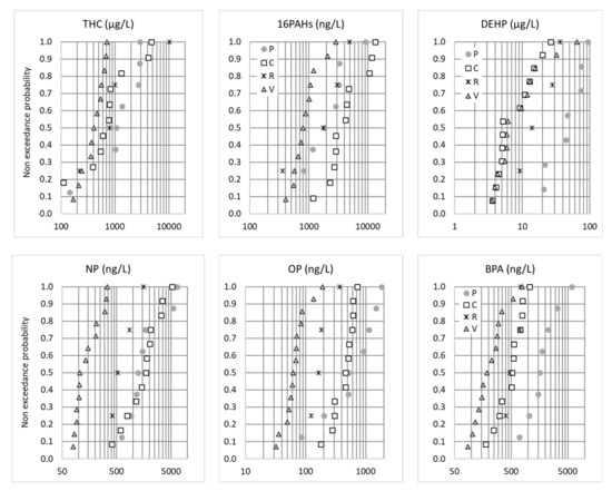 - Sablayrolles, C.; Breton, A.; Vialle, C.; Vignoles, C.; Montréjaud-Vignoles, M. Priority Organic Pollutants in the Urban Water Cycle (Toulouse, France). Water Sci. Technol. 2011, 64, 541. [Google Scholar] [CrossRef]