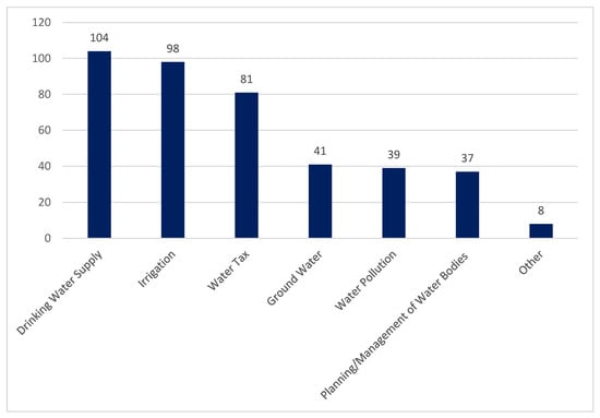 As Figure 2 shows, the laws in the dataset largely pertain to six major water categories, namely, drinking water supply, irrigation, water tax, groundwater regulation, water pollution, and planning and management of water bodies.