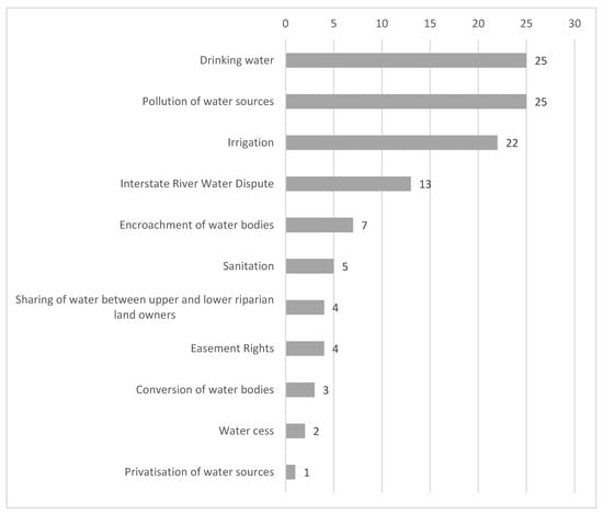 The Government of India Act, 1935, enacted in response to Indians’ demands for greater autonomy for British India specifically gave power to provinces concerning water supply, irrigation, canals, drainage and embankments, water storage, and hydropower. Following independence in 1947, India opted for a federal system of government with a unitary bias ordained by the Indian Constitution that was adopted in 1950. The Union Parliament and executive not only have greater powers of legislation and execution [38] but also have primacy in areas of concurrent jurisdiction [39] and residuary powers [40] of legislation. The Constitution retained the framework of the Government of India Act by including “water” in the state list. Law-making power and executive responsibility for water and sanitation services fall squarely within the purview of state legislatures [41], with the exception of river water disputes, which fall within the purview of Parliament [42]. The Interstate River Water Disputes Act, 1956, provides the statutory framework for adjudication of disputes between upstream and downstream states along the lines of common law principles regarding sharing of water between riparian landowners, suitably adapted to the conditions of Indian states. The Act also constitutes a tribunal to adjudicate disputes between states parties. Water scarcity, especially in the water-stressed states, frequently leads to interstate water disputes, and increasingly between districts and communities. However, as described in Section 2, these disputes have been excluded from this paper as they do not involve any articulation of the “right to water”.