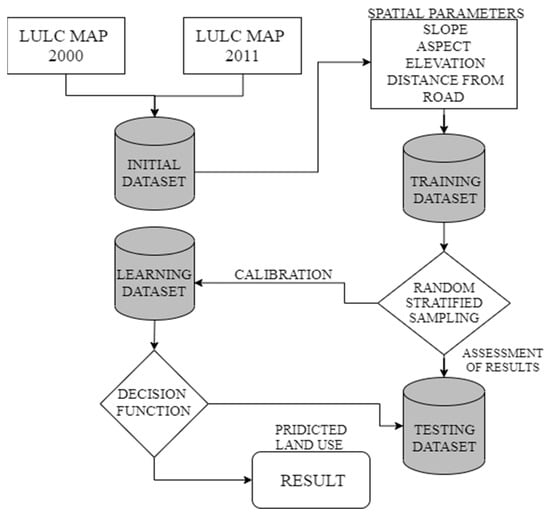 Land use planners, resource managers, and conservation officers can utilize predicted LULC changes to promote sustainable land management and mitigate adverse consequences. As a result, LULC change detection and prediction have become essential considerations in a wide array of disciplines, such as identifying biodiversity hotspots for prioritizing conservation efforts, modelling rural and urban planning [43,44], and investigating degradation processes, among others [45]. Aerial imagery and historical maps have been used in conjunction with geospatial technologies and remote sensing to characterize landscape dynamics and deliver scientifically reliable results and action plans that have aided policymakers and planners in advancing sustainable development, particularly in rapidly growing urban environments [46]. As a result, transition potential modelling and projecting future LULC under the impact of geographical factors are used to figure out where changes have occurred and may occur in the future [47]. Most of these models analyze LULC transitions using temporal land-use data, which, combined with spatial factors, may forecast future LULC possibilities [48]. A variety of models have been developed so far for forecasting and simulating LULC changes [49]. Statistical-based techniques and machine learning methods have also been utilized for decades in land use modelling [34,50]. To analyze the LULC change process, researchers often utilize a combination of models, GIS, and remote sensing methods. Models based on equations [42], statistics [35], Markov chains [28], and cellular models are the most used approaches.
