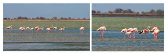 - Popenko, V.M.; Andryushchenko, Y.A. Nesting of Greater Flamingo (Phoenicopterus roseus) in Ukraine. Branta Trans. Azov-Black Sea Ornithol. Stn. 2017, 20, 220–223. (In Russian). [Google Scholar] [CrossRef]