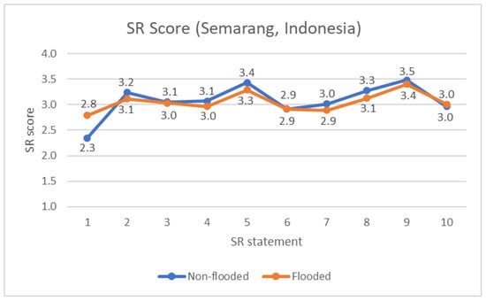 Comparison of SR scores between flooded and non-flooded communities in Indonesia.