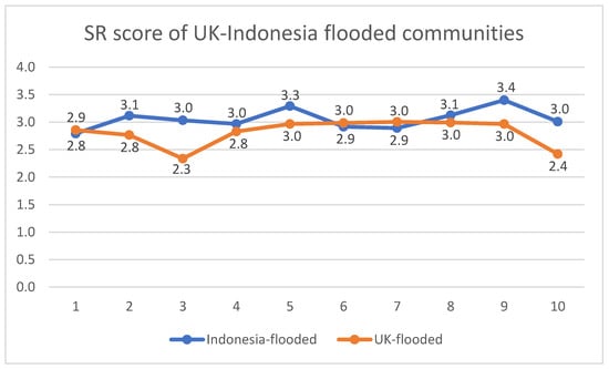 Comparison of SR scores between Indonesian and UK flooded communities.