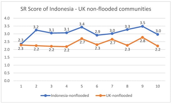 Comparison of SR scores between Indonesian and UK non-flooded communities.