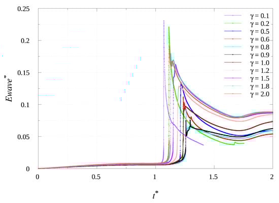 Figure 5 plots the temporal evolution of the acoustic energy, obtained from the numerical simulations with different -values. The interest region ranges from 0.1 to 2.0. The acoustic energy is normalized as: