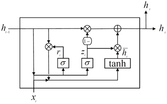 where and are the reset and update gates, respectively. Reset gate aims to reset past data and outputs a value between 0 and 1, which is the value of how much past data will be reset through the activation function. The update gate determines the rate of past and present information updates and the output value, , determines the amount of data to be exported at this point in time; is the amount of data to be forgotten.