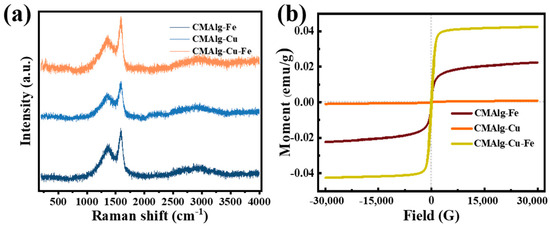 (a) Raman spectra of CMAlgs aerogels, (b) VSM of CMAlgs aerogels.