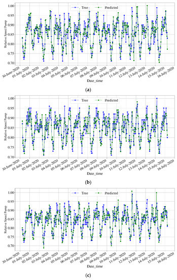Figure 6 shows the graphical comparison of estimated values and the real values of the operating speed of each driving equipment of Network 2. A high predictive capability of the GCN model is observed. A similar trend can be observed between the real relative speed pattern and the estimated speed by the T-GCN models. This suggests the model’s validity in prediction and the ability to estimate pump speeds.