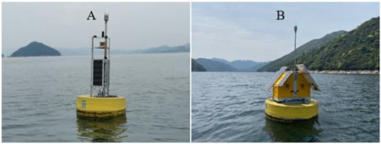 Figure 2 shows photographs of the Buoy_surface system at site 5 (Figure 2A), located at the mouth of largest tributary (Xinan River, Figure 1), and the Buoy_profiler system at site 4 (Figure 2B), located at the deepest area in front of the dam for the power station (Figure 1), which is the only outflow. The web interface, which dynamically updates all station data from the database, allows the user to make requests for time periods of interest, review data from specific sites, visualise data as a function of time, and perform simple statistical analyses of the real-time data. All historical data from the monitoring system can be downloaded through the web interface by authorised users.