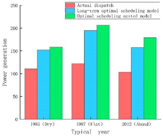 The power generation comparison diagram under different scheduling schemes in typical years.