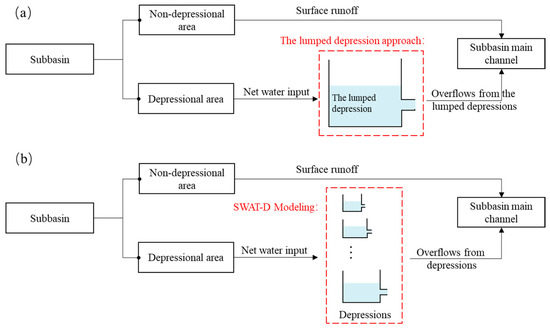 Comparison of two modeling methods (a) lumped depression approach and (b) SWAT-D.