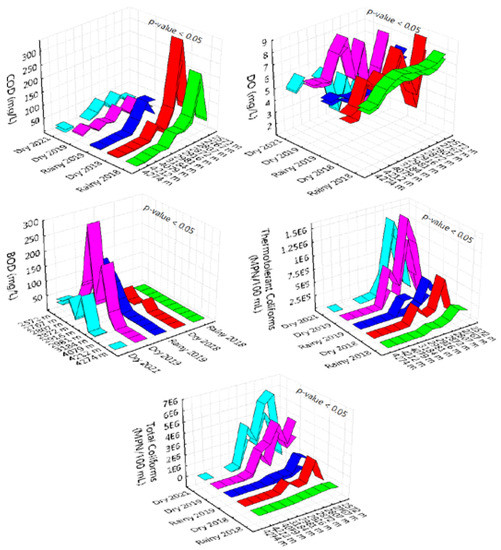 | Organic matter—OM: COD, DO, BOD, Thermotolerant Coliforms, Total Coliforms | (3) |