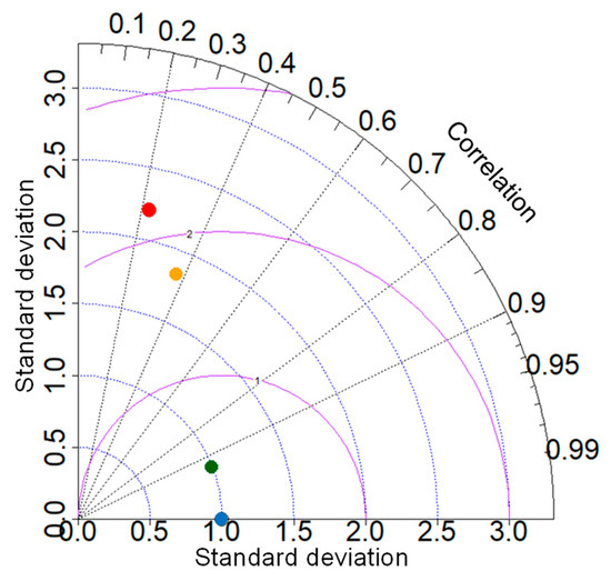- Taylor, K.E. Summarizing multiple aspects of model performance in a single diagram. J. Geophys. Res. 2001, 106, 7183–7192. [Google Scholar] [CrossRef]