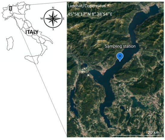 Map of Lake Maggiore (Northern Italy) with the sampling station. Modified from Google Earth (accessed on 14 January 2022).