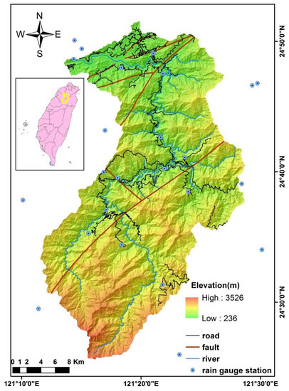 - Fu, C.C. Event-Based Landslide Susceptibility and Rainfall-Induced Landslide Probability Prediction Model in the Zengwen Reservoir Catchment. Master’s Thesis, National Central University, Taoyuan City, Taiwan, 2017. [Google Scholar]