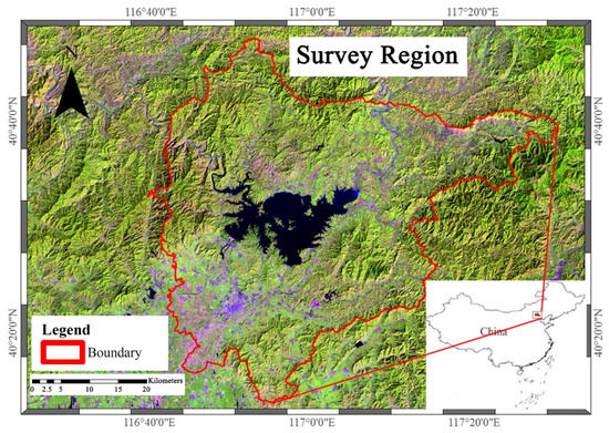 Miyun County (Lat. 40°14′–40°48′ N and Long. 116°41′–117°30′ E), which includes 17 towns, is situated in the mountainous region of Beijing and has an area of approximately 2230 km2, as shown in Figure 1. The local economic structure is composed of farming, forestry, animal husbandry, and fishing. The land in the study area is dominated by forest (73.63% of the land area) and commercial agriculture (cropping, agri-tourism, and characteristic horticulture), which are the major sectors of employment for residents [29]. The population expanded from 423,792 in 2003 to 476,000 in 2013, an increase of 12.26% [30].